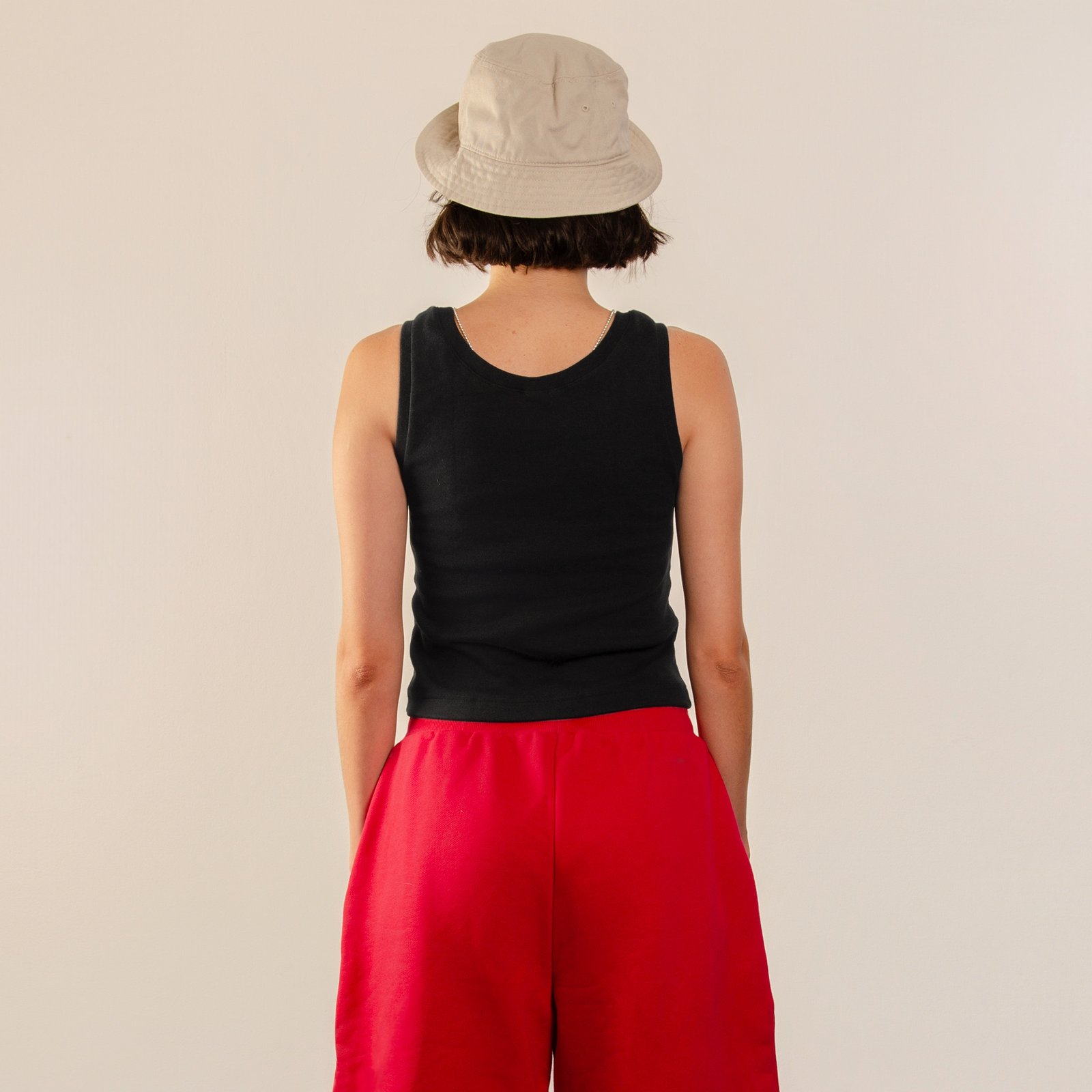 Tank top en 100% algodón rib pesado. Cuello tipo U, escote semi-profundo en pecho y espalda.